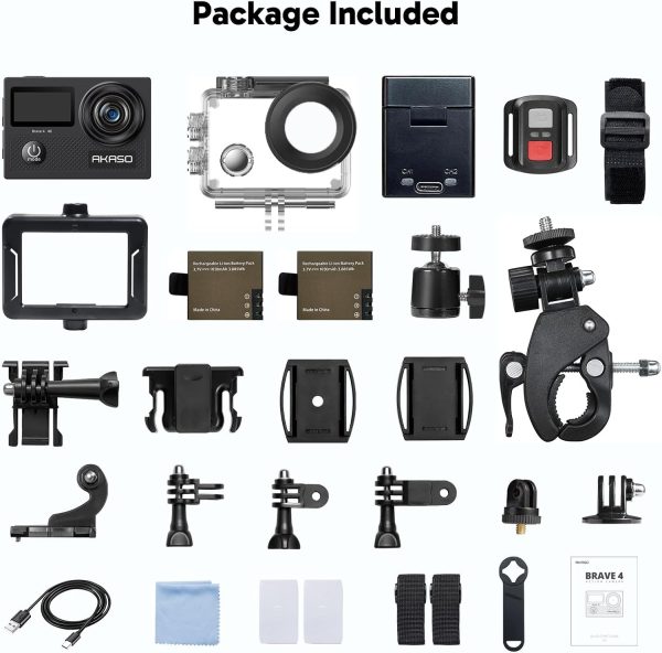 In addition, this camera comes with a bicycle helmet accessories kit, so you can easily attach it to your helmet for hands-free filming while biking or skateboarding. Take your videos to the next level with the AKASO Brave 4 4K30fps 20MP WiFi Action Camera.