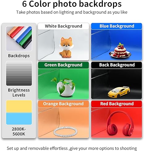 Light Box Photography Photo Shooting Tent kit, 12″x12″ Portable Folding Photography Light Tent with CRI >95 120pcs LED Light & 6-Color Backgrounds, Stands for Photographic Apparatus
